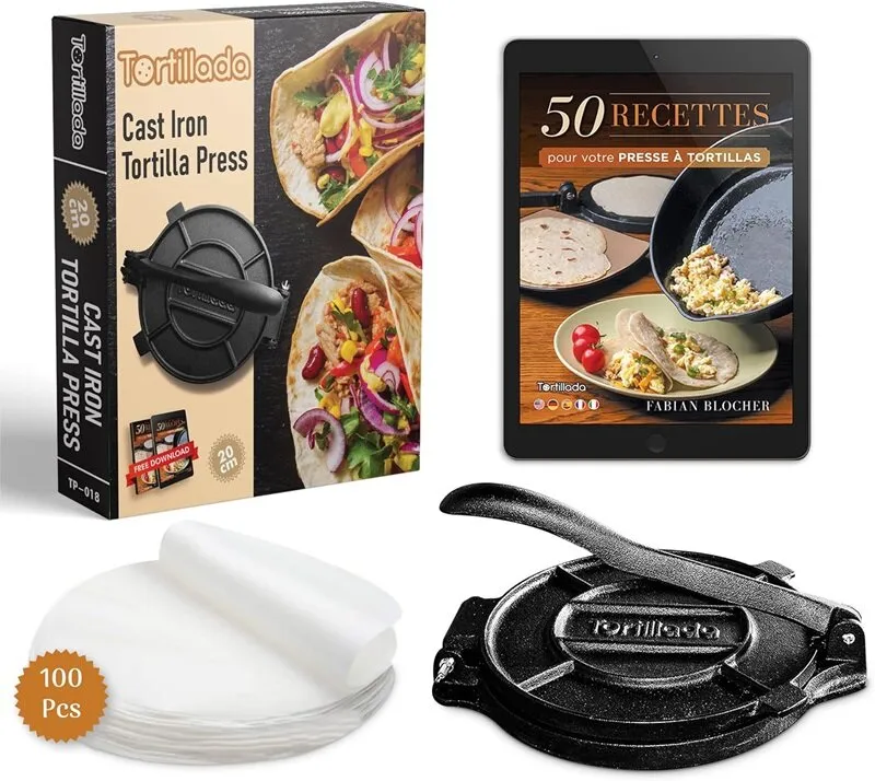 Vous souhaitez cuisiner à la Mexicaine? découvrez la presse à tortillas ! Vous pourrez faire des tortillas, patacones, tostones, empanadas, arepas, quenelles, mini-tartes, patacon pisao et plus encore.