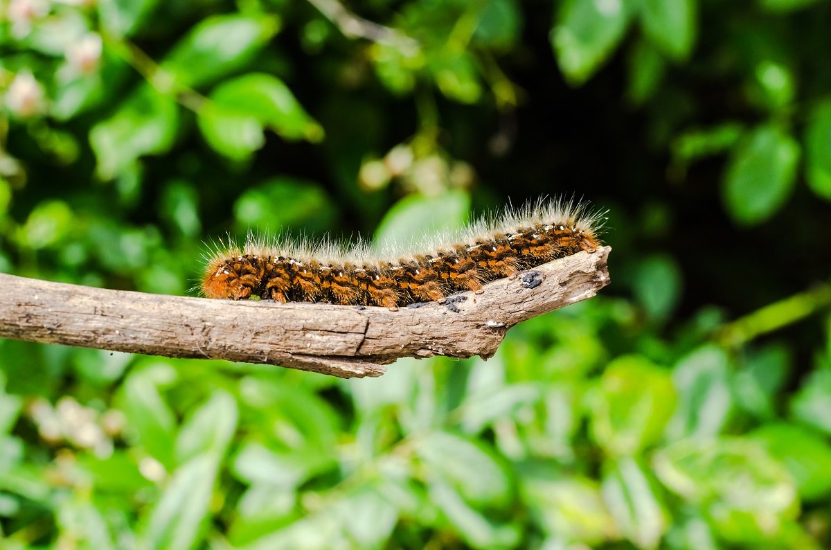 Il existe deux types de chenilles processionnaires. La première, dite du pin, vit exclusivement dans les pins et quitte son nid au printemps, pour aller s’enterrer dans le sol afin de devenir chrysalide. C’est à ce moment-là, lors de la procession, que vous pouvez donc les croiser au sol. Attention à ne pas trop vous en approcher et à éloigner votre chien pour ne pas qu’il les touche. Il est bien sûr hors de question pour vous de les attraper à main nue, contentez-vous de passer votre chemin. La chenille du pin se reconnaît facilement grâce à sa couleur orangée, bardée de noir. Elle possède aussi de longs poils gris clairs, qui lui donnent cette impression duveteuse et sa tête est entièrement noire.