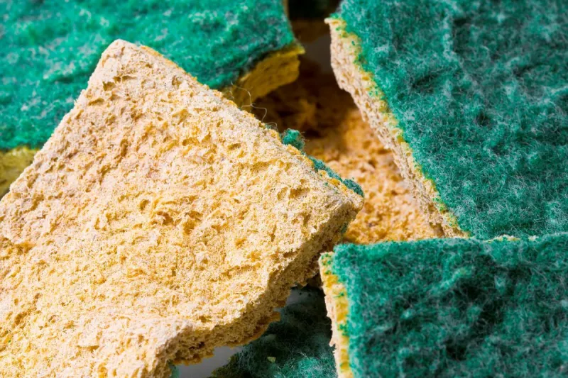 Quant aux éponges, il vaut mieux tout bonnement les éviter car elle sont constamment humides et peuvent être porteuses d'E. coli. On peut bien sûr les passer au micro-onde mais ça n'élimine pas tout. Sinon, préférez des éponges lavables que vous passez à la machine très régulièrement.