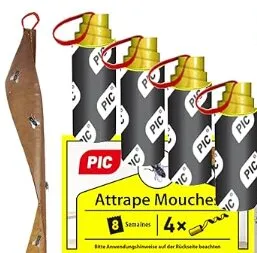 - Capture : Lorsque les mouches se posent ou volent à proximité du rouleau, elles entrent en contact avec la surface collante du papier, ce qui immobilise leurs mouvements. Une fois qu'une mouche est piégée, elle ne peut plus s'échapper.