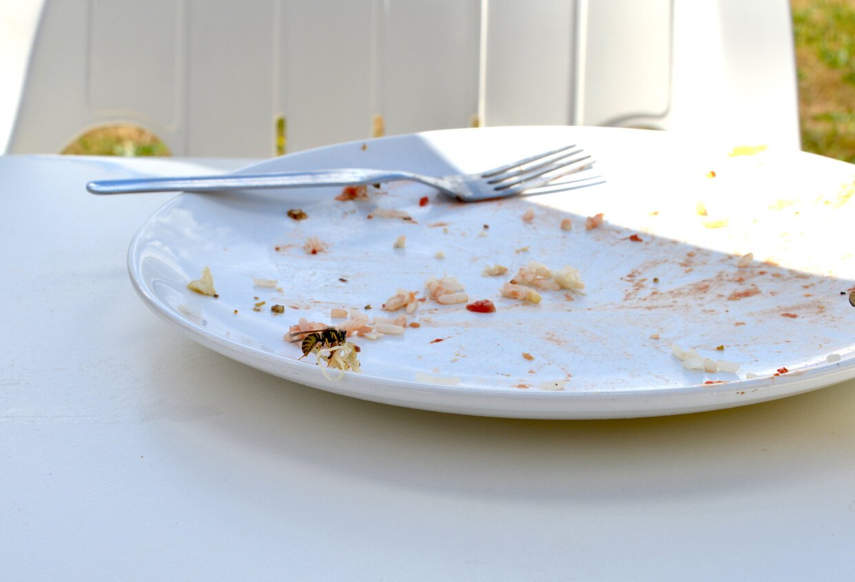 Pensez à couvrir les plats avant de les sortir et de les mettre sur la table. Cela évitera aux guêpes de sentir les effluves qui s'en dégagent dès le début du repas.