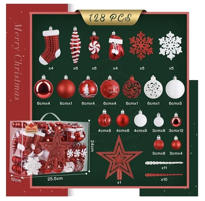 Pour créer une ambiance de Noël chaleureuse et mémorable dans votre chalet, optez pour notre ensemble de 128 boules de Noël rouges et blanches en plastique incassable. Découvrez dès maintenant notre lot de boules de Noël et transformez votre espace en un véritable havre de fête.