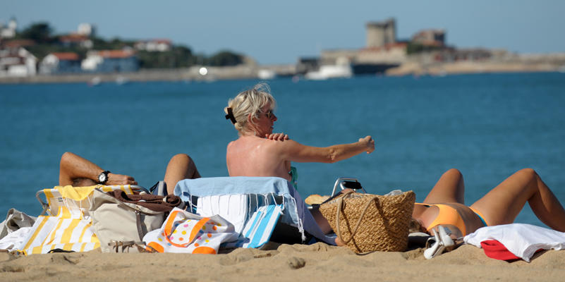les gens apprécient le soleil sur une plage de saint-jean de luz, le 17 octobre 2014 afp photo gaizka iroz
