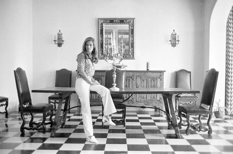 Dalida assise sur la table de la salle à manger