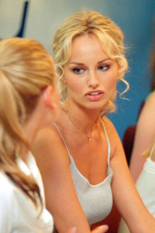 La sublime Adriana Karembeu avec de longs cheveux blonds et une frange rideau en 2003.