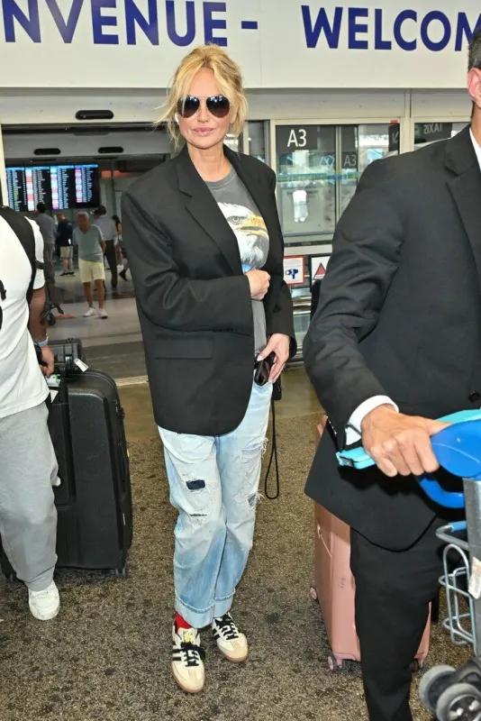 Adriana Karembeu lors de son arrivée à l'aéroport de Nice, le 15 mai 2025.