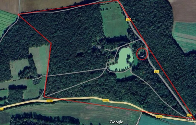 Alain Delon avait 120 hectares de terrain dont un lac et une demeure, entourée en rouge ci-dessus.