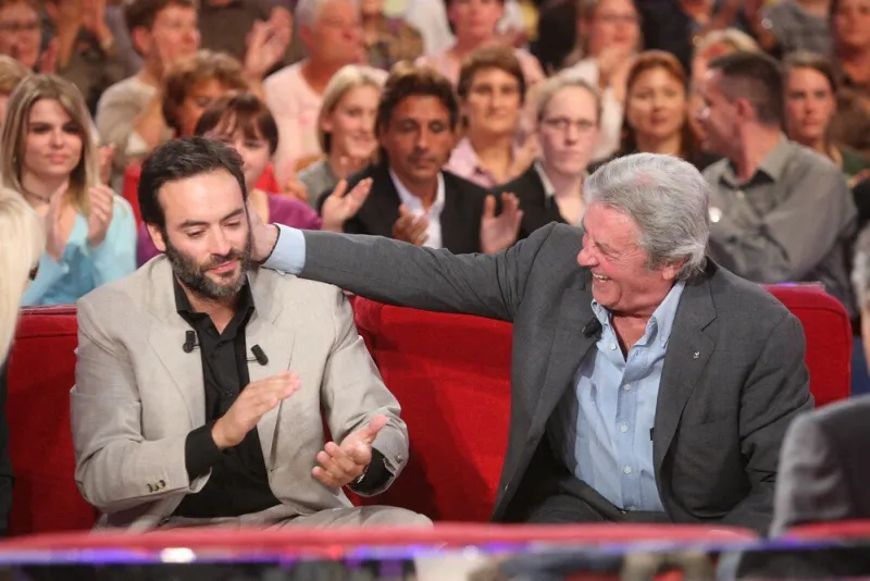Alain Delon et son fils Anthony sur le plateau de Vivement dimanche en 2008.
