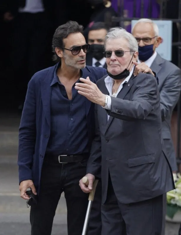 Anthony Delon et son père lors des obsèques du comédien Jean-Paul Belmondo, le 10 septembre 2021.