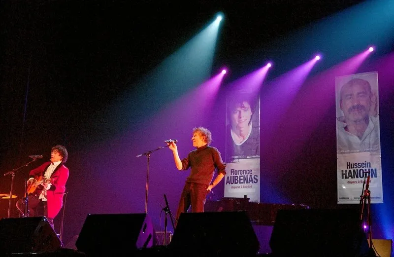 Les deux chanteurs français se produisaient à l'Olympia de Paris, en février 2005, lors d'un concert organisé par "Reporters sans frontières" afin de réclamer la libération de la journaliste française Florence Aubenas et son chauffeur Hussein Hanoun.