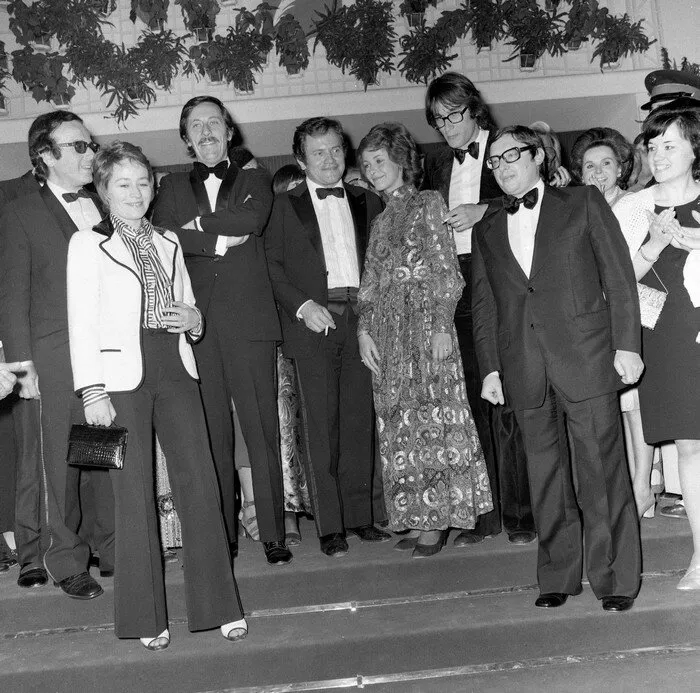 Annie Girardot (à gauche du cliché) au côté de Jean Rochefort lors du Festival de Cannes en 1972.