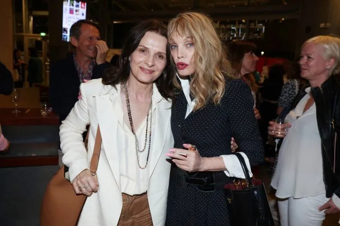 La chanteuse Arielle Dombasle et la comédienne Juliette Binoche lors de la première du film Les Amandiers.