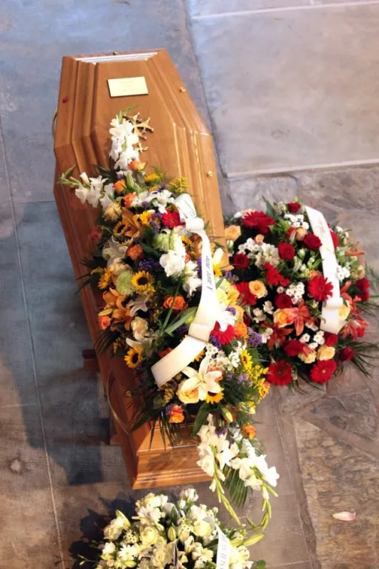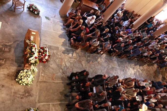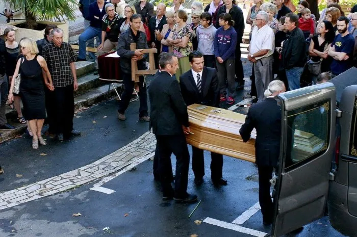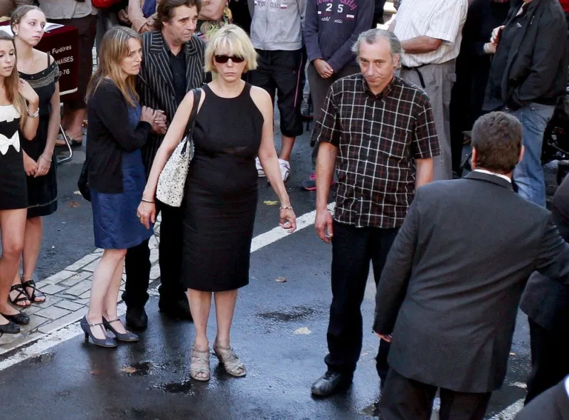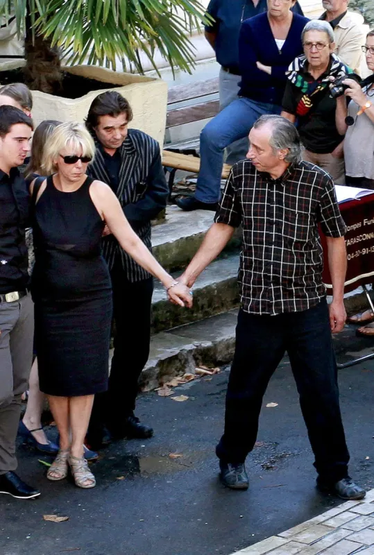 Élisabeth et David Lafont, les enfants de la comédienne, lors de ses funérailles à Nîmes, le 29 juillet 2013.