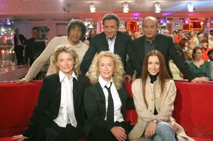 Michel Drucker entouré de ses invités dont Brigitte Fossey et Marie Adam en 2005.