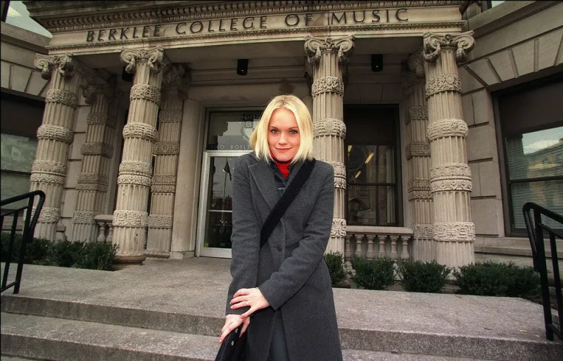 Caroline Dhotel prenant la pose devant la Berklee College of Music, école où elle aurait suivi des cours de chant.