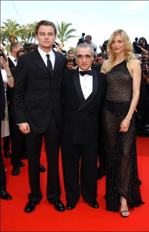 Cameron Diaz, Leonardo DiCaprio et le réalisateur Martin Scorsese à Cannes pour la projection du film Gangs of New York en 2002.
