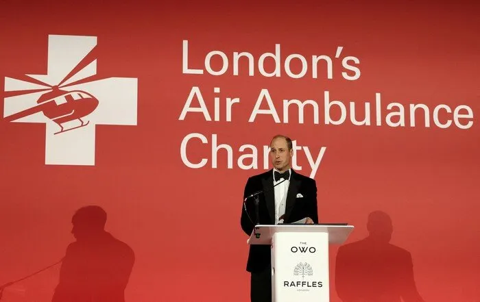"Bonsoir à tous. Je vous remercie de votre présence. Et merci à tous ceux qui, par leur travail acharné, ont rendu cette soirée possible. J'aimerais profiter de l'occasion pour vous remercier également pour les aimables messages de soutien adressés à Catherine et à mon père, en particulier ces derniers jours. On peut dire que ces dernières semaines ont été plutôt médicales", a-t-il déclaré et d'ajouter : "Nous nous réunissons ce soir pour aider le plus grand nombre possible de personnes à bénéficier de soins de premier ordre grâce aux ambulances aériennes de London Air Ambulance (...) Je voudrais également profiter de l'occasion pour mentionner Tom Cruise. Tom, merci beaucoup de nous avoir soutenus ce soir".