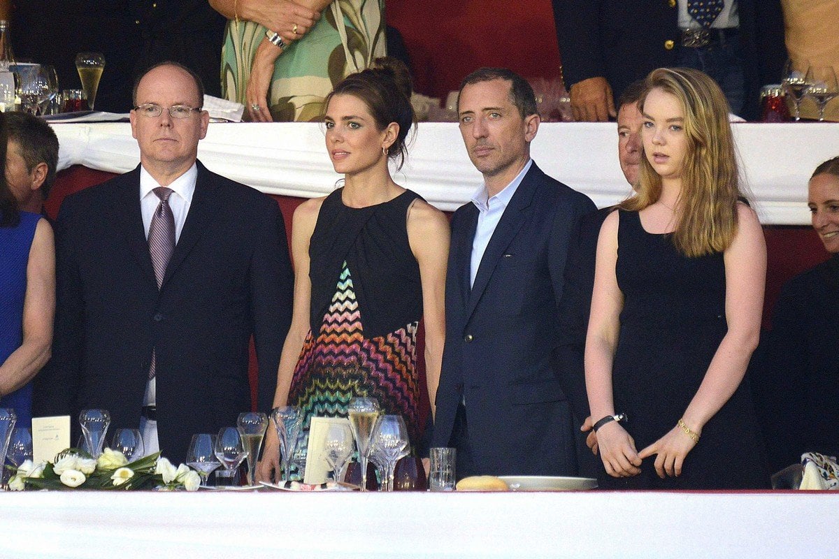 Charlotte Casiraghi, son compagnon Gad Elmaleh et le prince Albert II à Monte-Carlo en juin 2015.