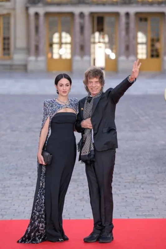 Mick Jagger et sa compagne, la chorégraphe Melanie Hamrick arrivant au dîner d'État de Charles III à Versailles.