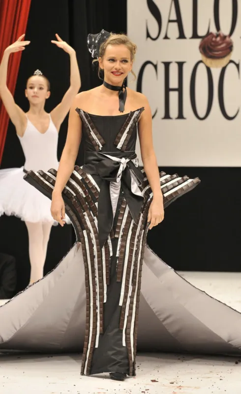La star défilait sur le podium du Salon du Chocolat en 2009.
