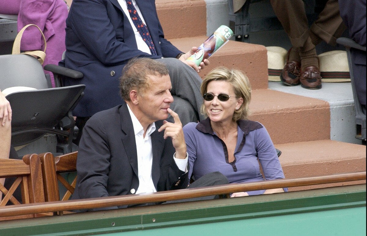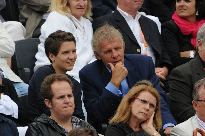 Patrick Poivre d'Arvor et son dernier fils François lors d'un match de tennis à Roland-Garros en 2012.