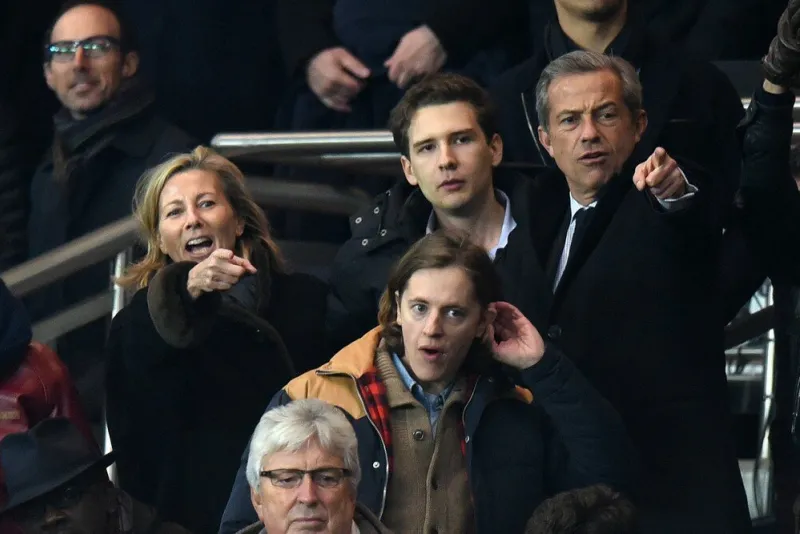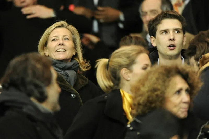 Claire Chazal et son fils François photographiés dans les tribunes du Parc des Princes en 2015.