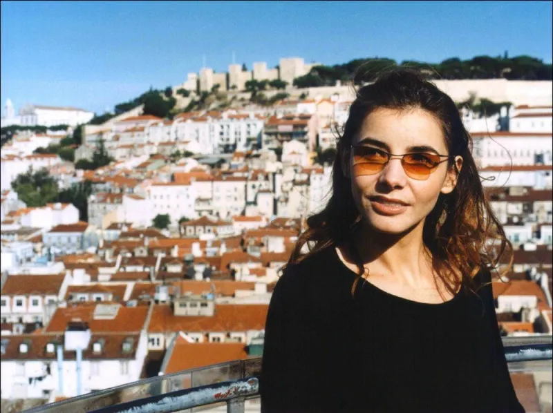 La comédienne prenant la pose devant un sublime paysage à Lisbonne en 2000.