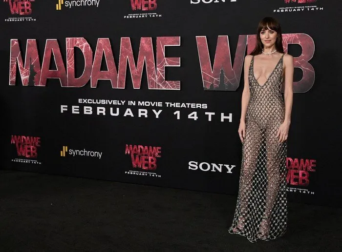 Dakota Johnson nue sous sa robe filet : ses photos canons à la première de "Madame Web"