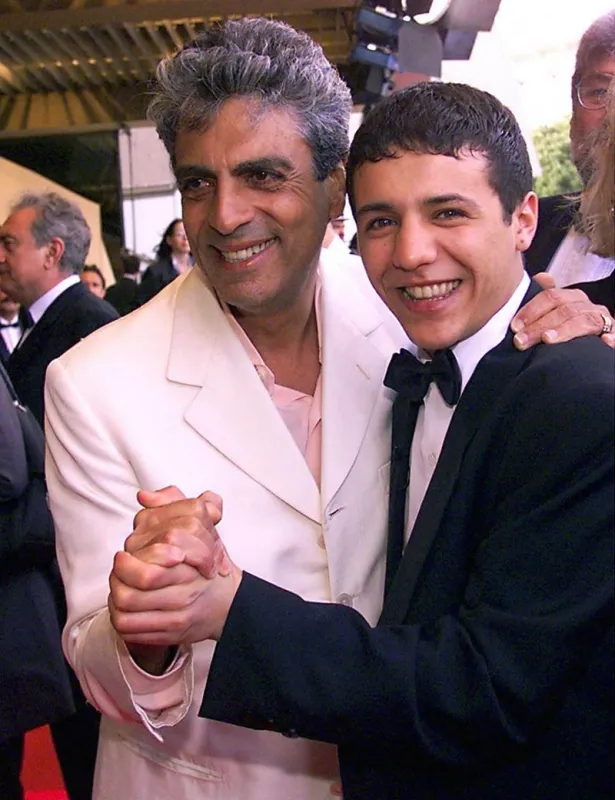 Enrico Macias en compagnie du chanteur Faudel, sur le tapis rouge de 52ème Festival du film à Cannes.