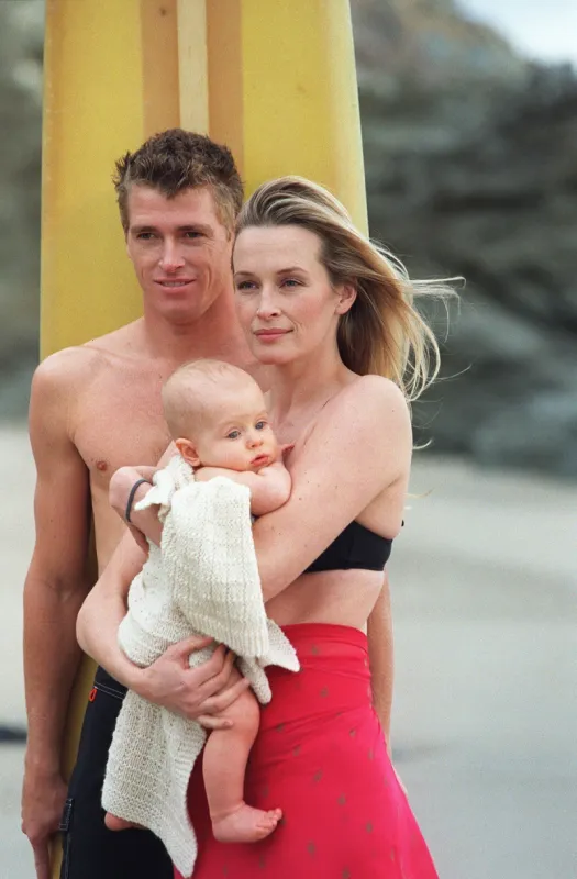 Sur ce cliché, Estelle Lefébure a fait la promotion pour Surf Channel sur une plage de Malibu.