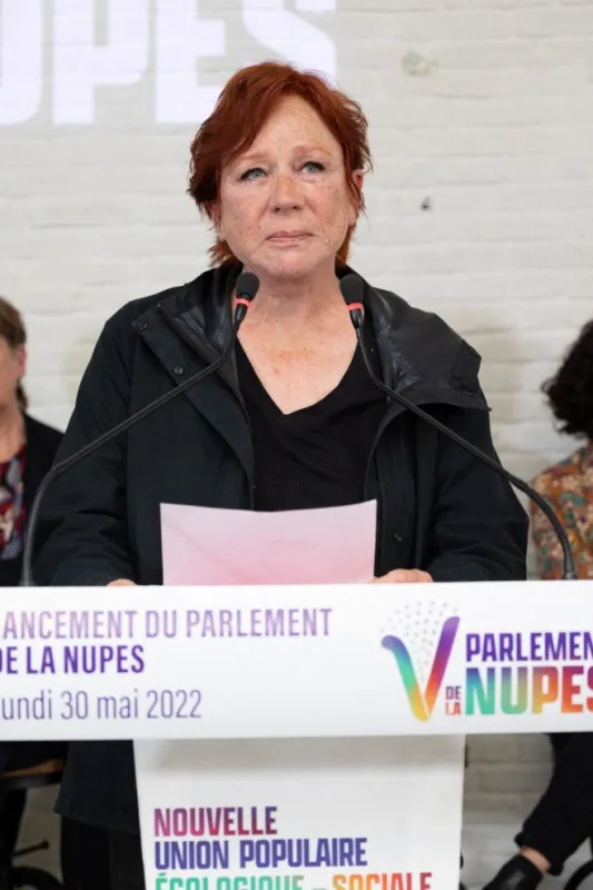 La comédienne Éva Darlan lors du lancement du Parlement de la Nouvelle Union Populaire, le 30 mai 2022.