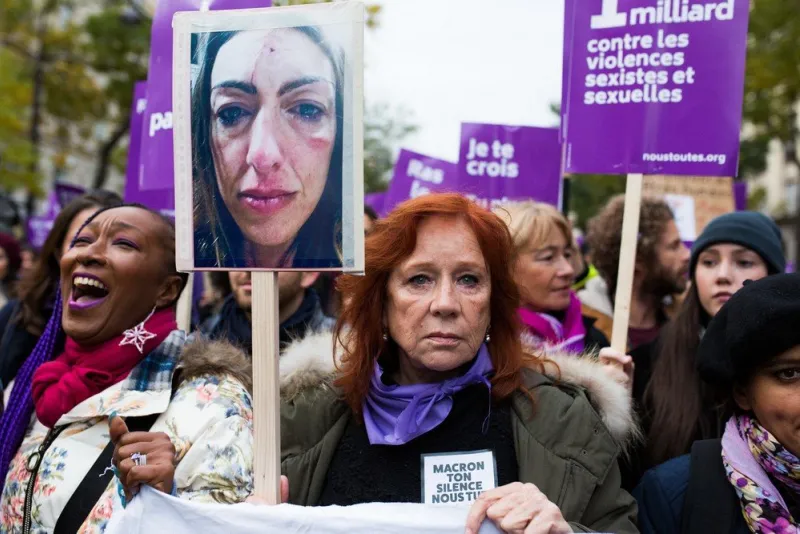 La comédienne Éva Darlan lors d'une manifestation contre les violences faites aux femmes en novembre 2019.