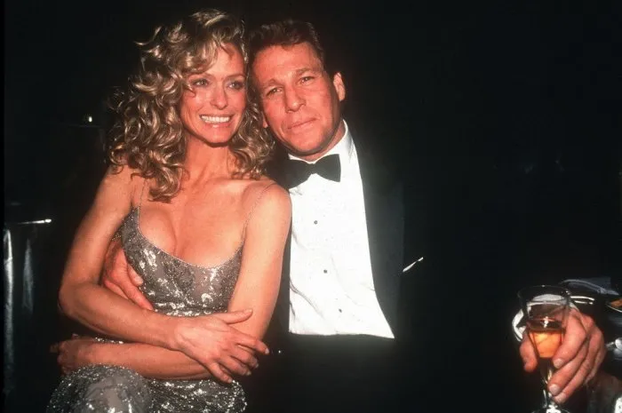 La comédienne Farrah Fawcett et son compagnon Ryan O'Neal en 1989.