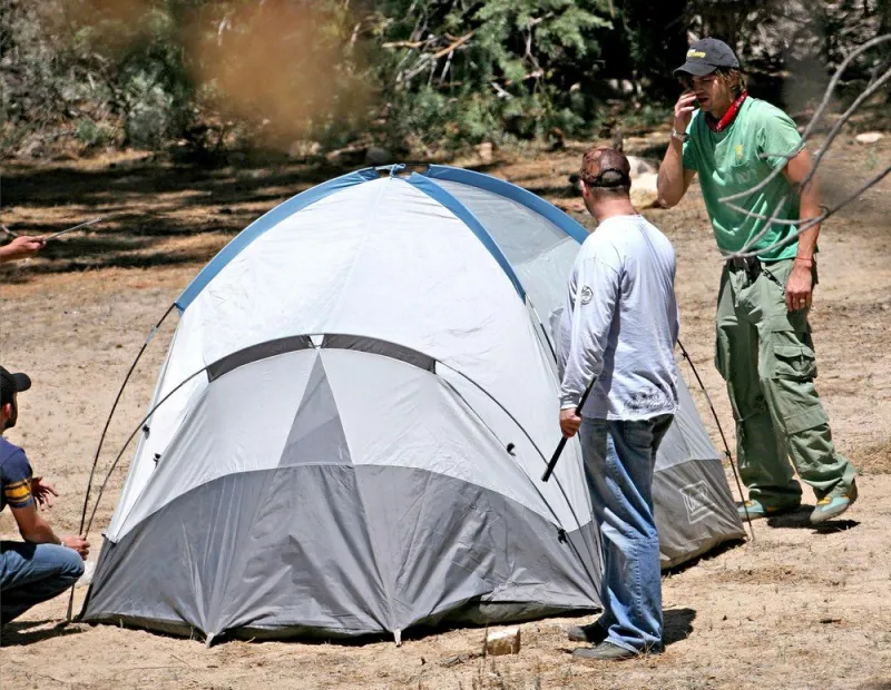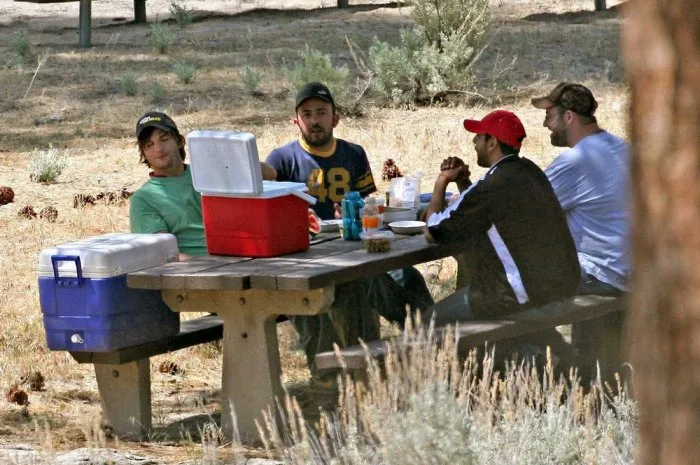 Le comédien Ashton Kutcher et ses amis lors d'un week-end de camping en 2007.