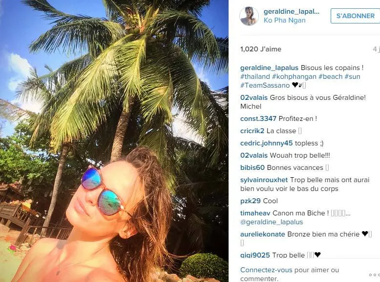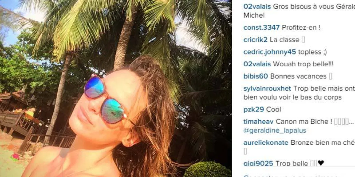Seulement voilà, parmi les photos de piscine et de plage idyllique, une image a retenu l'attention de ses fans : on voit la belle, prendre une selfie... topless ! Le bikini s'est fait la malle et Géraldine fait du sein nu sur la plage, pour le plus grand plaisir de ses followers sur Instagram...