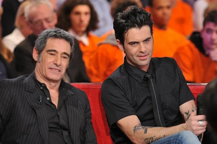 Gérard Lanvin et son fils Manu sur le plateau de Vivement dimanche en 2011.