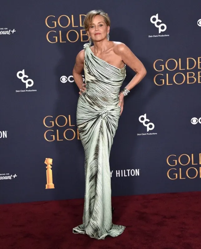 La comédienne Sharon Stone était très glamour sur le tapis rouge des Golden Globes.