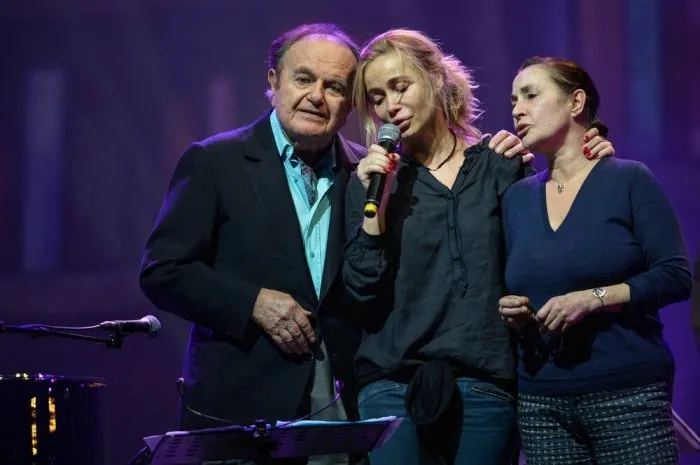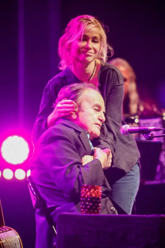 Le chanteur Guy et sa fille Emmanuelle Béart sur scène en 2015.