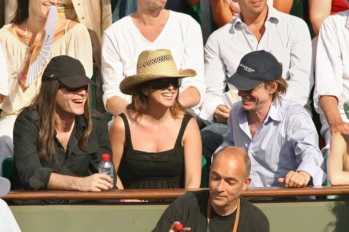 Hélène Ségara et son époux Mathieu Lecat lors d'un moment de complicité avec Jean-Louis Aubert à Roland-Garros en 2006.