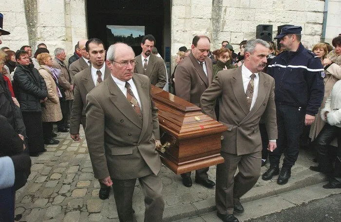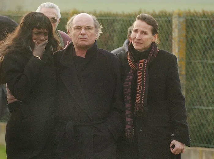 Sa compagne Seny, l'acteur Jean-François Stevenin et son épouse lors des obsèques de Jacques Villeret.