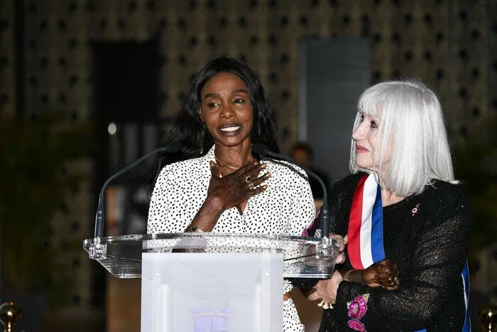 Seny, la dernière compagne du comédien, lors de l'inauguration d'un théâtre à Bry-sur-Marne en 2021.