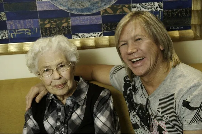 Le chanteur Patrick Juvet et sa mère prenant la pose ensemble en 2008.