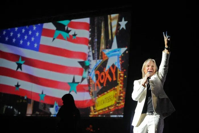 Le chanteur de I love America sur la scène lors de la tournée Âge tendre et tête de bois en 2009.