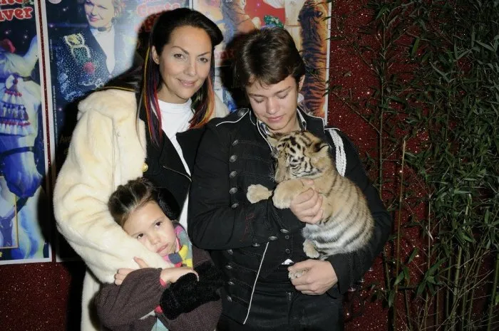 La princesse prenant la pose aux côtés de ses deux enfants Calixte et Allegra.