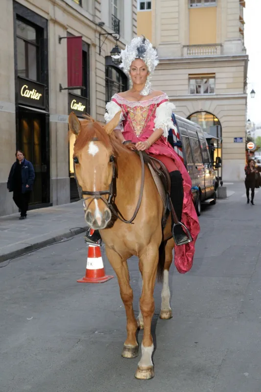 La mondaine Hermine Clermont-Tonnerre sur la place Vendôme à l'occasion de la 3e édition du Rallye des princesses.