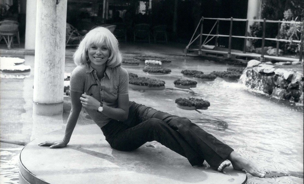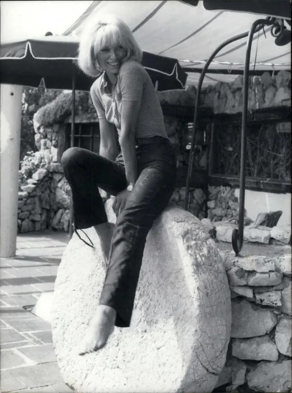 La sublime comédienne Mireille Darc prenant la pose à Antibes en 1969.