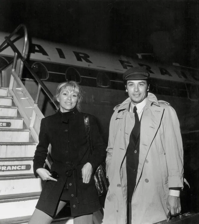 Mireille Darc et Alain Delon photographiés en Allemagne en 1970.
