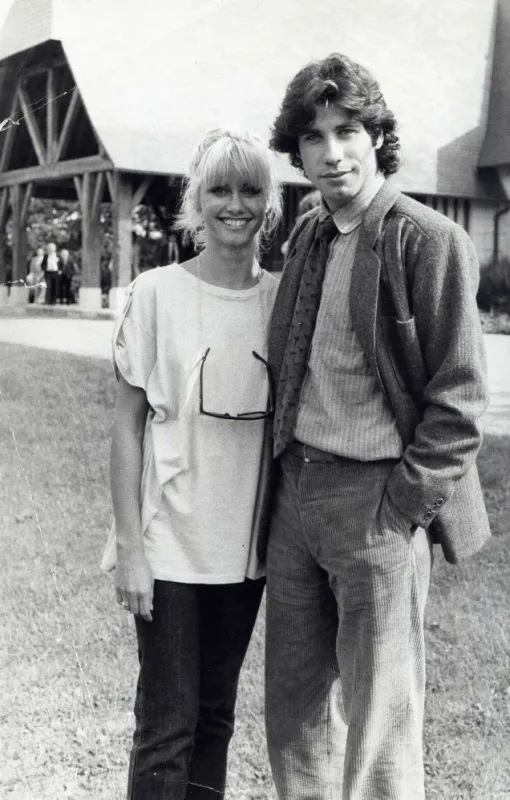 Olivia Newton-John et son ami John Travolta lors du tournage de Grease, en 1978.