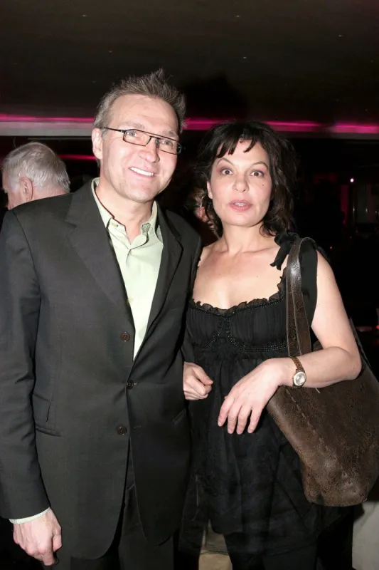 La comédienne prenant la pose aux côtés de Laurent Ruquier lors de la sortie DVD de la pièce de théâtre Si c'était à refaire.