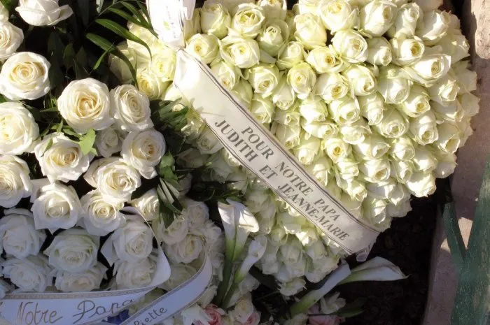 Judith et Jeanne-Marie, deux des cinq enfants de Jacques Martin, ont déposé cette gerbe de fleurs.